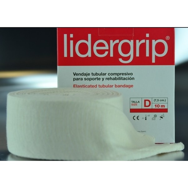 Vendaje tubular Lidergrip en tejido elástico compresivo para soporte y rehabilitación, que por sus especiales características, nos permite ejercer una presión uniforme y prolongada sobre la parte del cuerpo en la que se aplica.