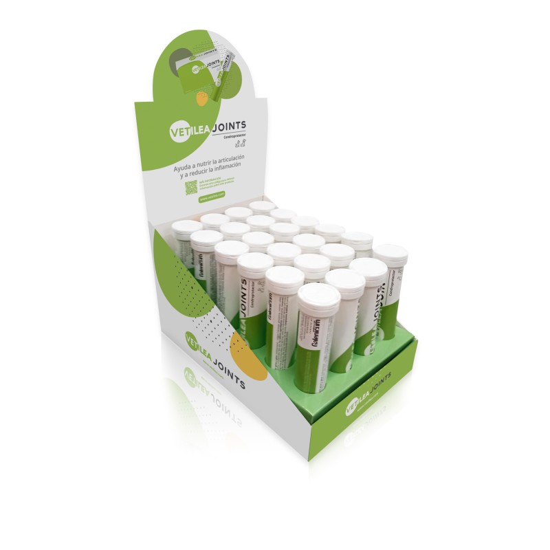 Vetilea Joints es un producto para proteger y cuidar las articulaciones de perros y gatos. Se recomienda darlo como condroprotector en procesos artrósicos tanto degenerativos como traumáticos.